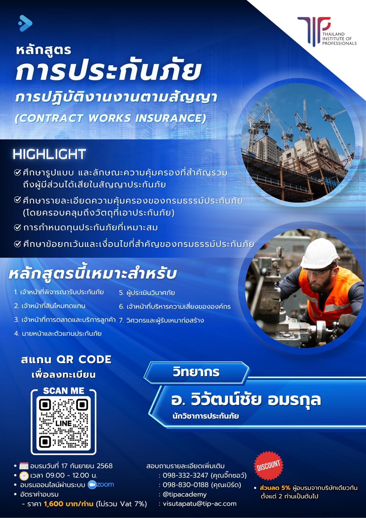 📝 หลักสูตร การประกันภัยการปฏิบัติงานตามสัญญา