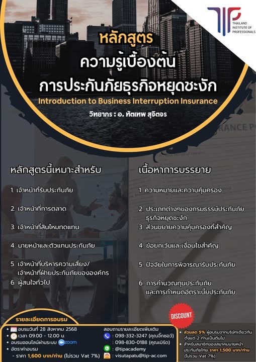 📝 หลักสูตร ความรู้เบื้องต้นการประกันภัยธุรกิจหยุดชะงัก