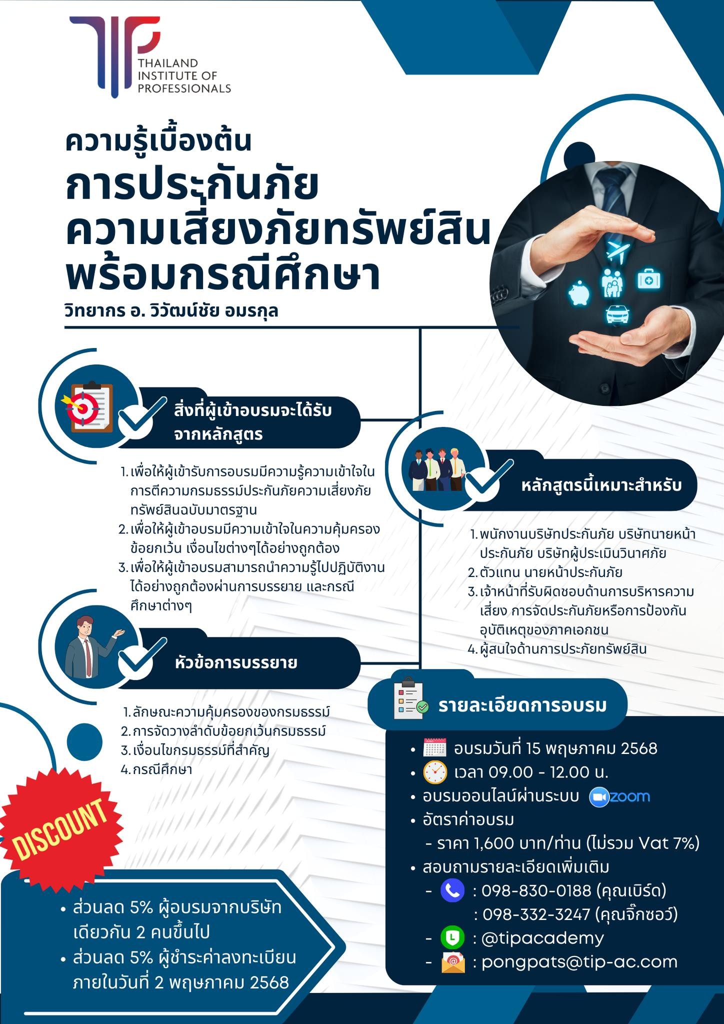 📝 หลักสูตร ความรู้เบื้องต้นการประกันภัยความเสี่ยงภัยทรัพย์สิน พร้อมกรณีศึกษา